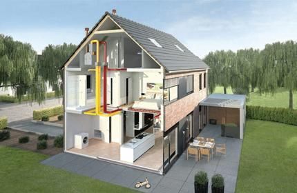In de keuken, badkamer en toilet wordt continu lucht afgezogen. In de woonkamer en slaapkamer moet dezelfde hoeveelheid lucht worden toegevoerd (balans). De warmte van de afgezogen lucht wordt via de warmtewisselaar in de WTW-unit overgedragen aan de verse buitenlucht.